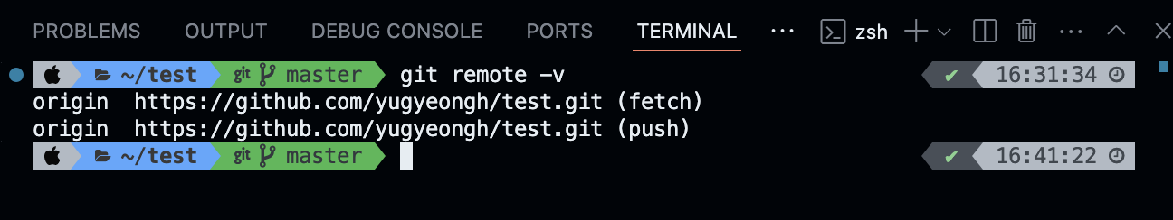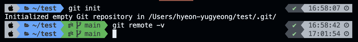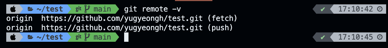🥸 정리하자면 1. git clone 깃허브주소 2. clone 받은 폴더의 경로에서 git remote -v 명령을 통해 원격과 로컬 저장소 연결 확인